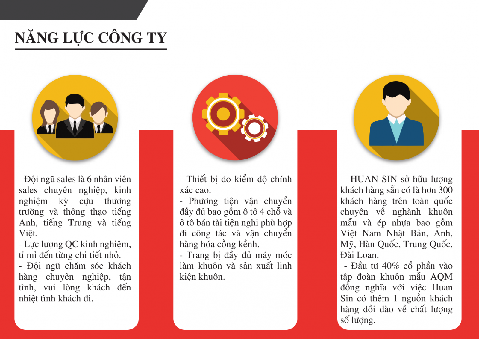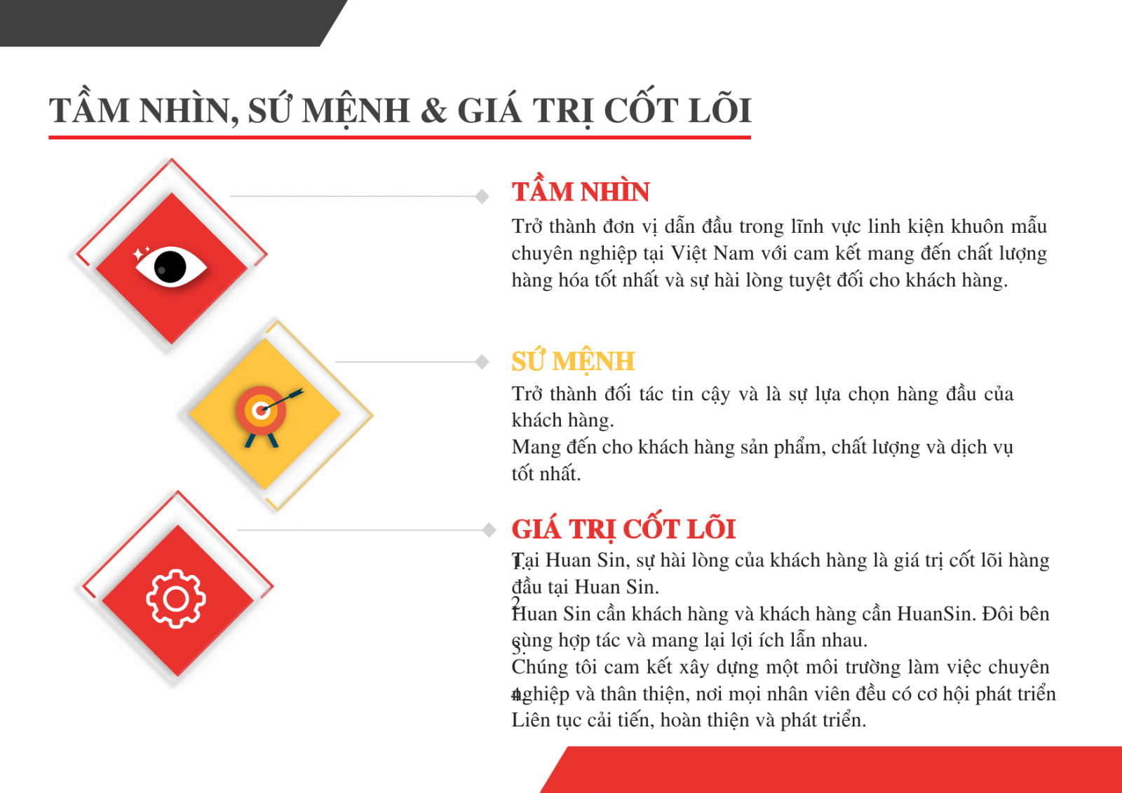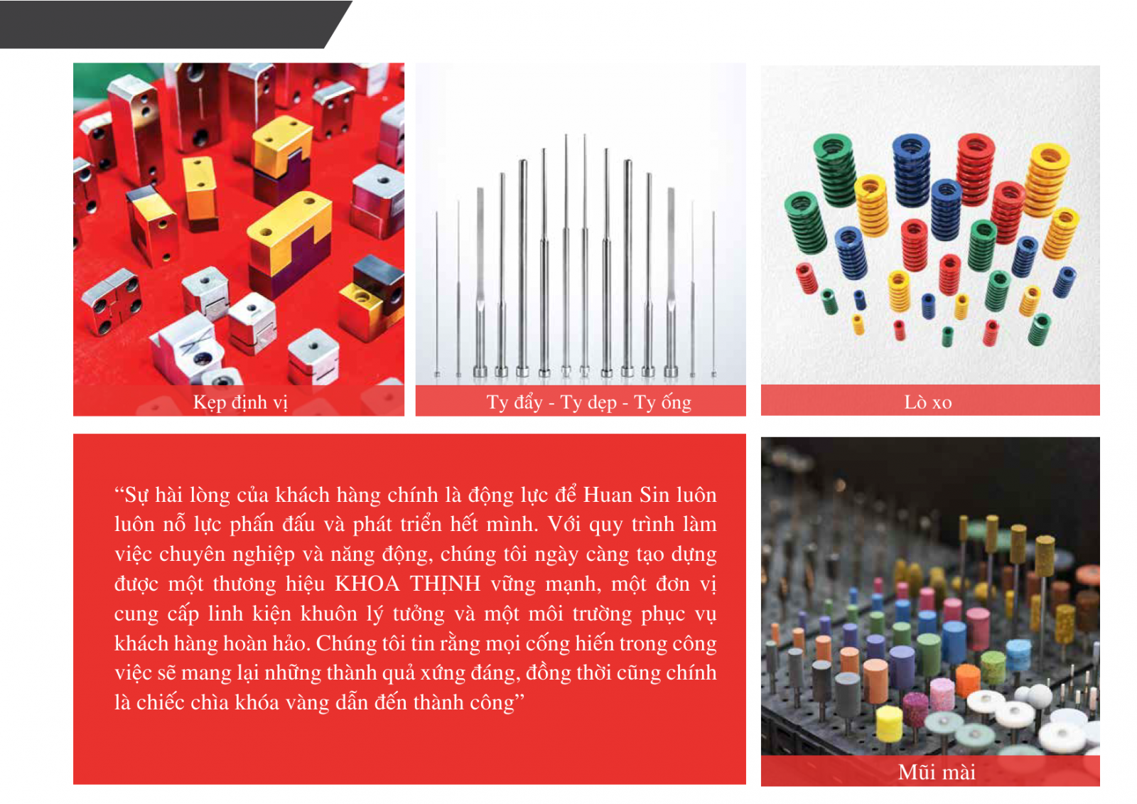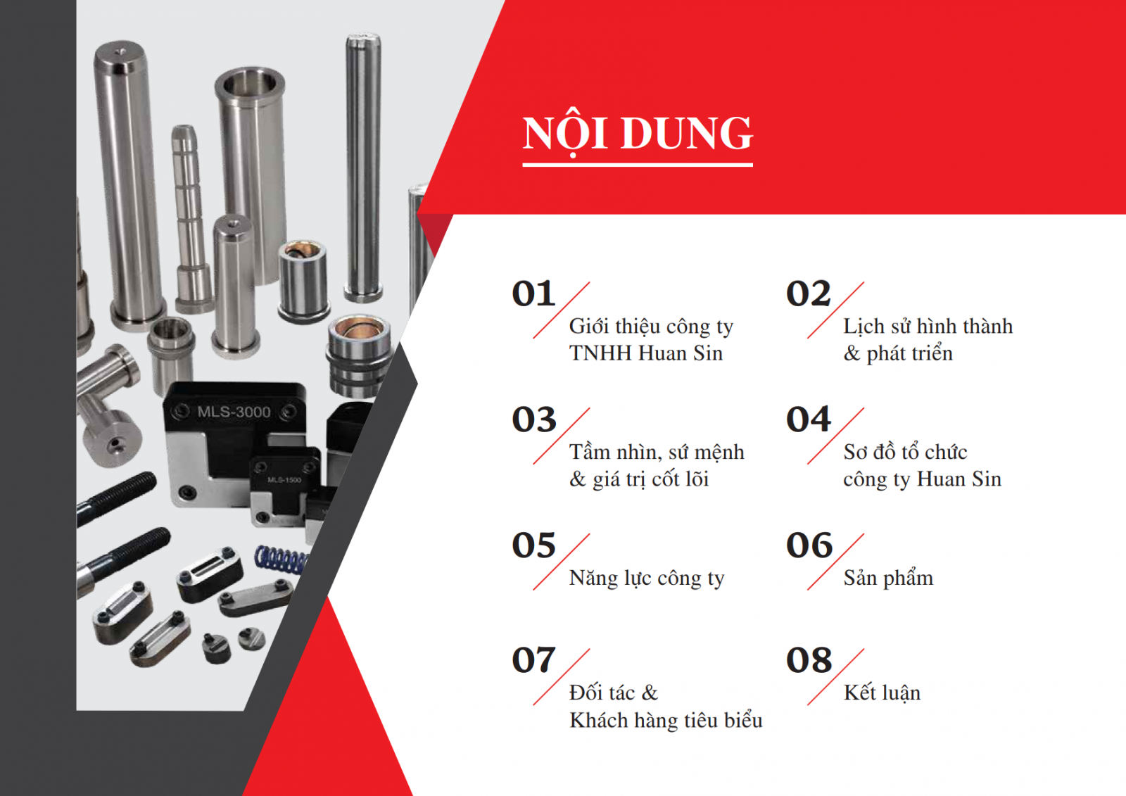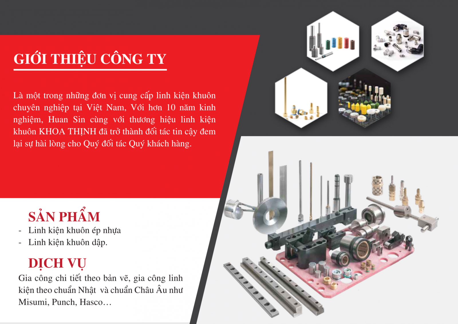 Huan Sin được thành lập năm 2007 tại TP. Hồ Chí Minh. Huan Sin là một trong những đơn vị hàng đầu Việt Nam chuyên cung cấp linh kiện khuôn cao cấp, công cụ cắt công nghiệp và các phần mềm mô phỏng CAD/CAM/ CAE.